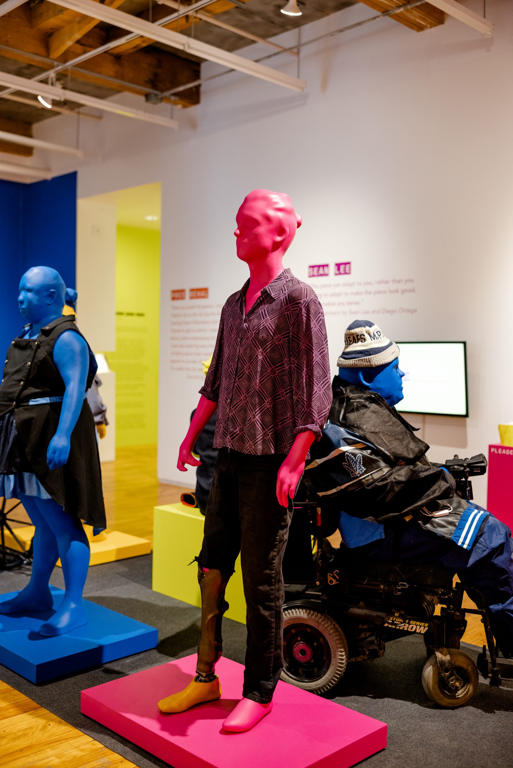- Body Surrogates: Seven brightly coloured 3D-printed mannequins based on the actual physiques of participants, alongside two mannequins representing invisible disabilities.