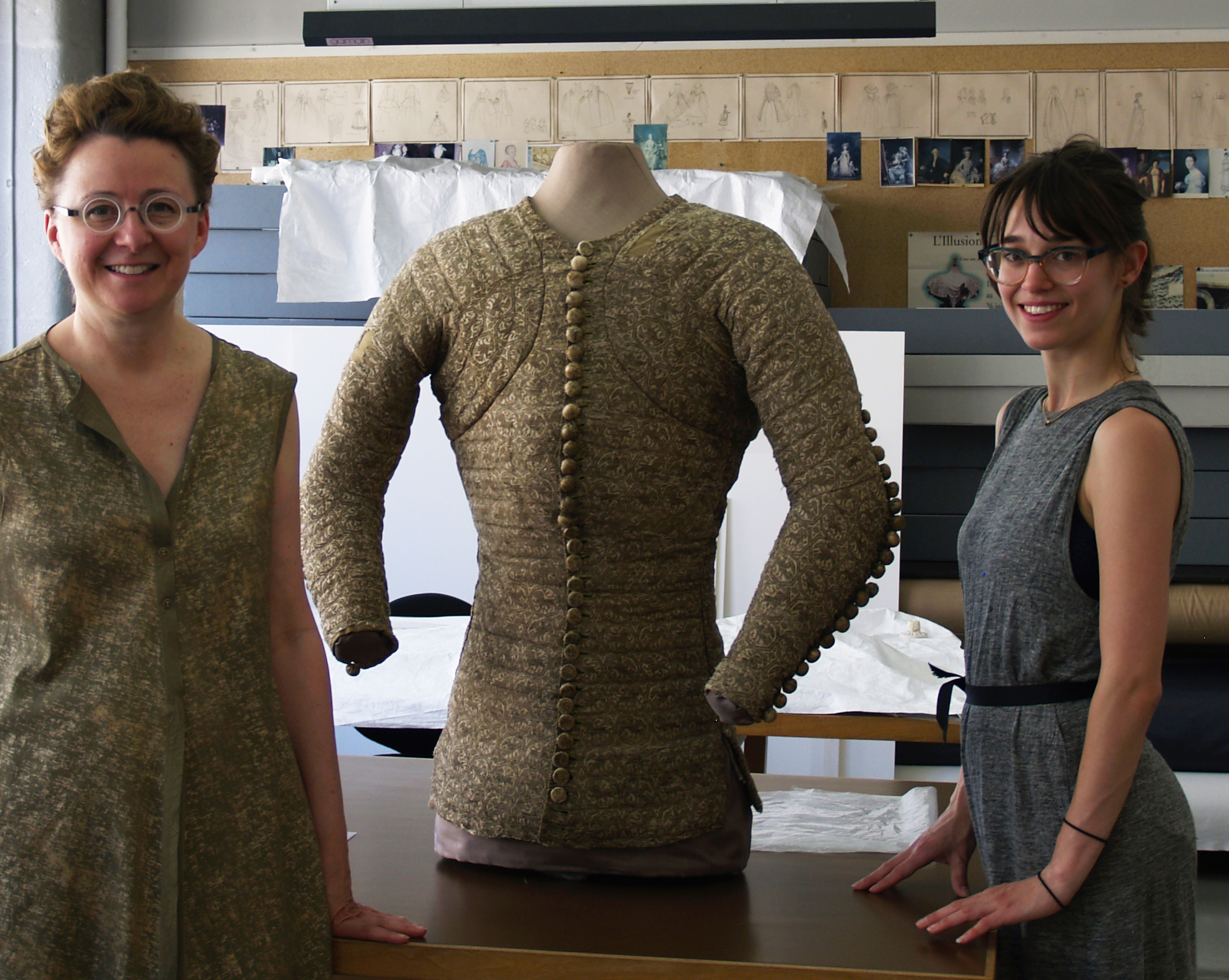 Dr. Bissonnette, the mid-14th-century pourpoint dit “de Charles de Blois”(#924.XVI.2, 2020) and Katelin Karbonik at the Musée des Tissus in Lyon, 2019.